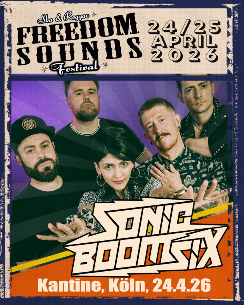 Sonic Boom Six bringen 2026 ihren explosiven Mix aus Punk, Ska, Hip-Hop und Drum’n’Bass auf die Bühne des Freedom Sounds Festivals! Die Band aus Manchester ist bekannt für explosive Liveshows, tanzbare Beats und klare politische Kante.